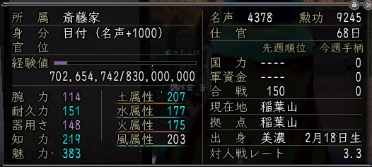 あぁ、知行の数字のメモ忘れた・・・Orz